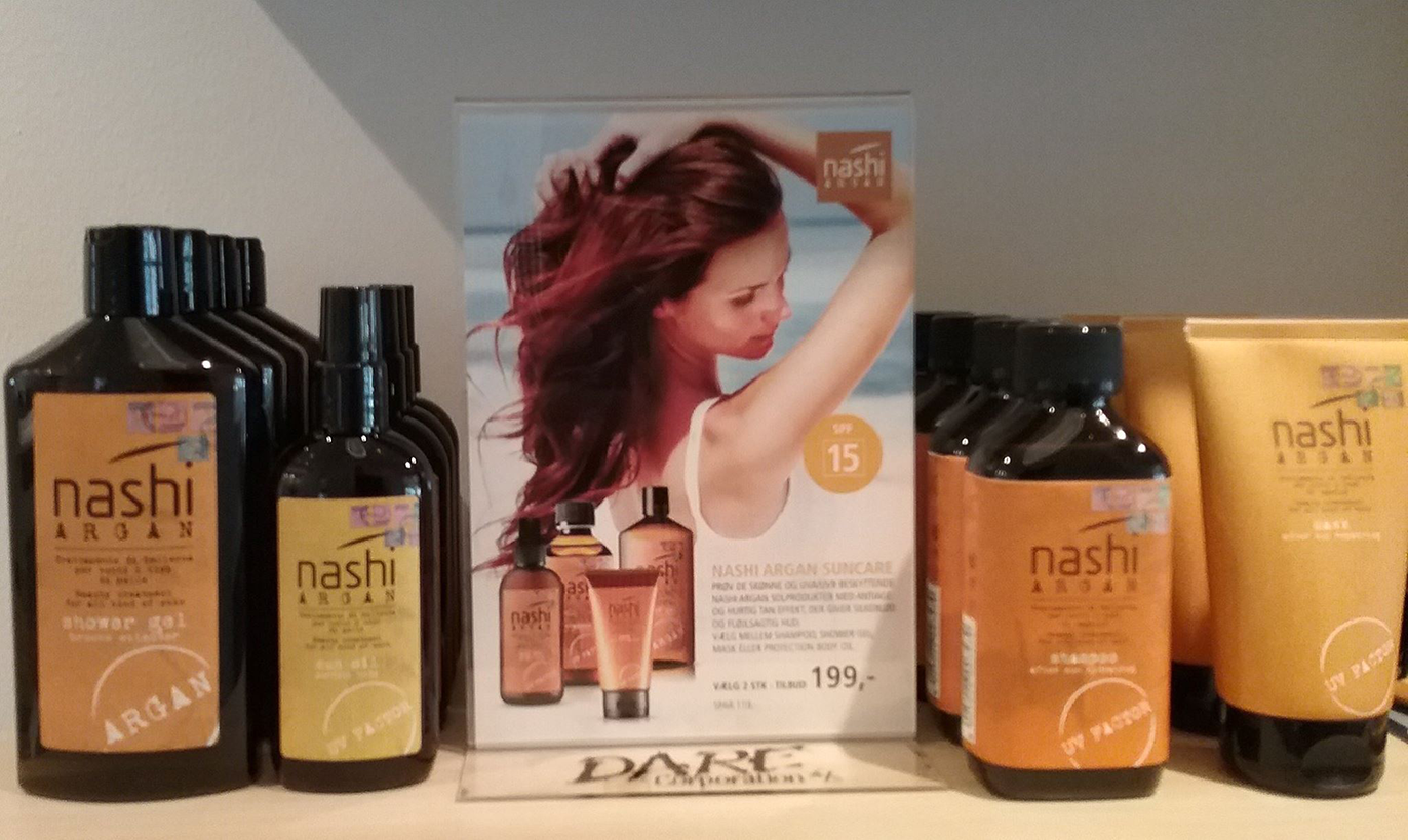 Som shampoo og plejeserie, bruger jeg både den helt grønne, italienske serie ’Nashi Argan’, og naturserien 'NYCE' fra New York.